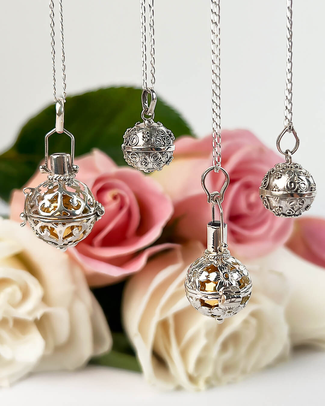 The Angel Caller is a piece of jewelry that reminds us we are never alone; we are always accompanied by our Guardian Angel. Inside each Angel Caller is a bell that allows us to invoke this light being, who is always by our side, fulfilling our deepest desires, sharing our fears, and guiding us in every step we take each day. Wearing the Angel Caller is an act of faith, trust, and, above all, spiritual protection.