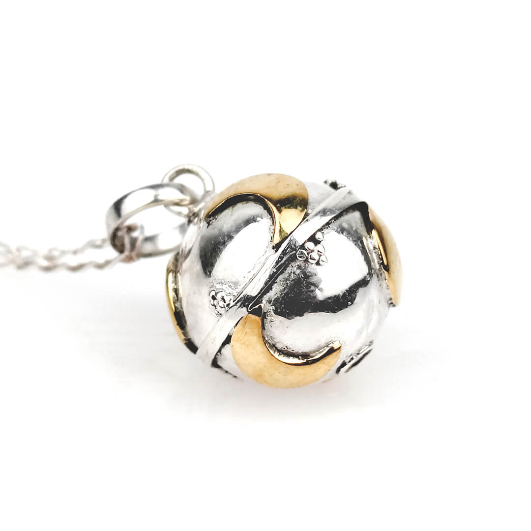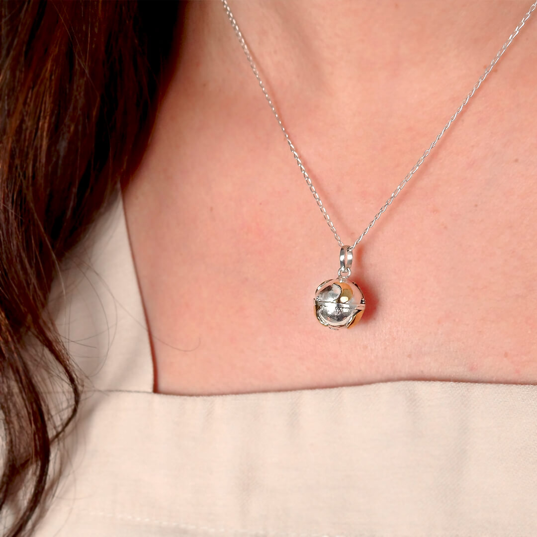 Honra la silenciosa sabiduría de la luna y el ritmo divino de la vida. Su diseño en plata presenta delicadas lunas crecientes que rodean una radiante luna dorada en el centro, símbolo de intuición, renovación y conexión espiritual. Con cada suave tintineo, invoca a tu Ángel Guardián, envolviéndote en calma, claridad y protección celestial. Llévalo como recordatorio de que, incluso en la oscuridad, siempre eres guiada por la luz.