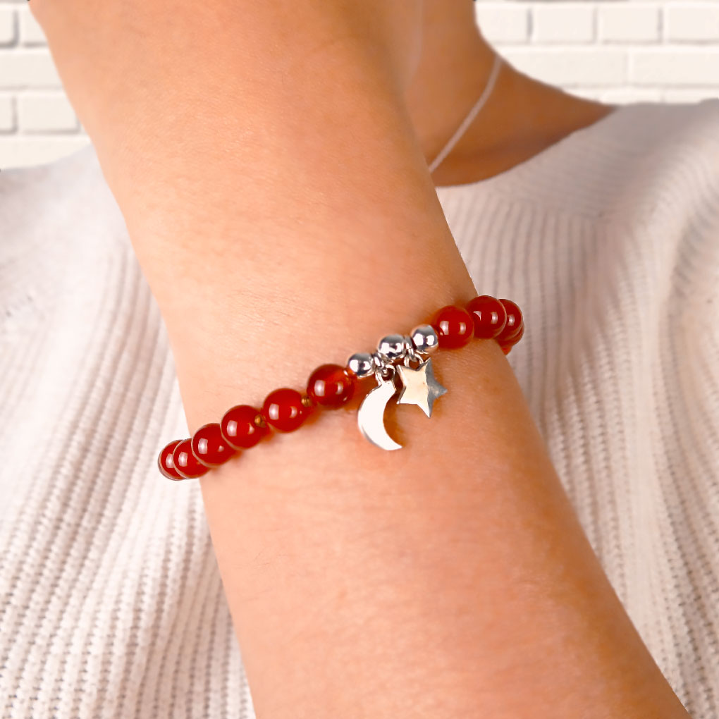 Significado de la Pulsera de Luna y Estrella | Cornalina Natural